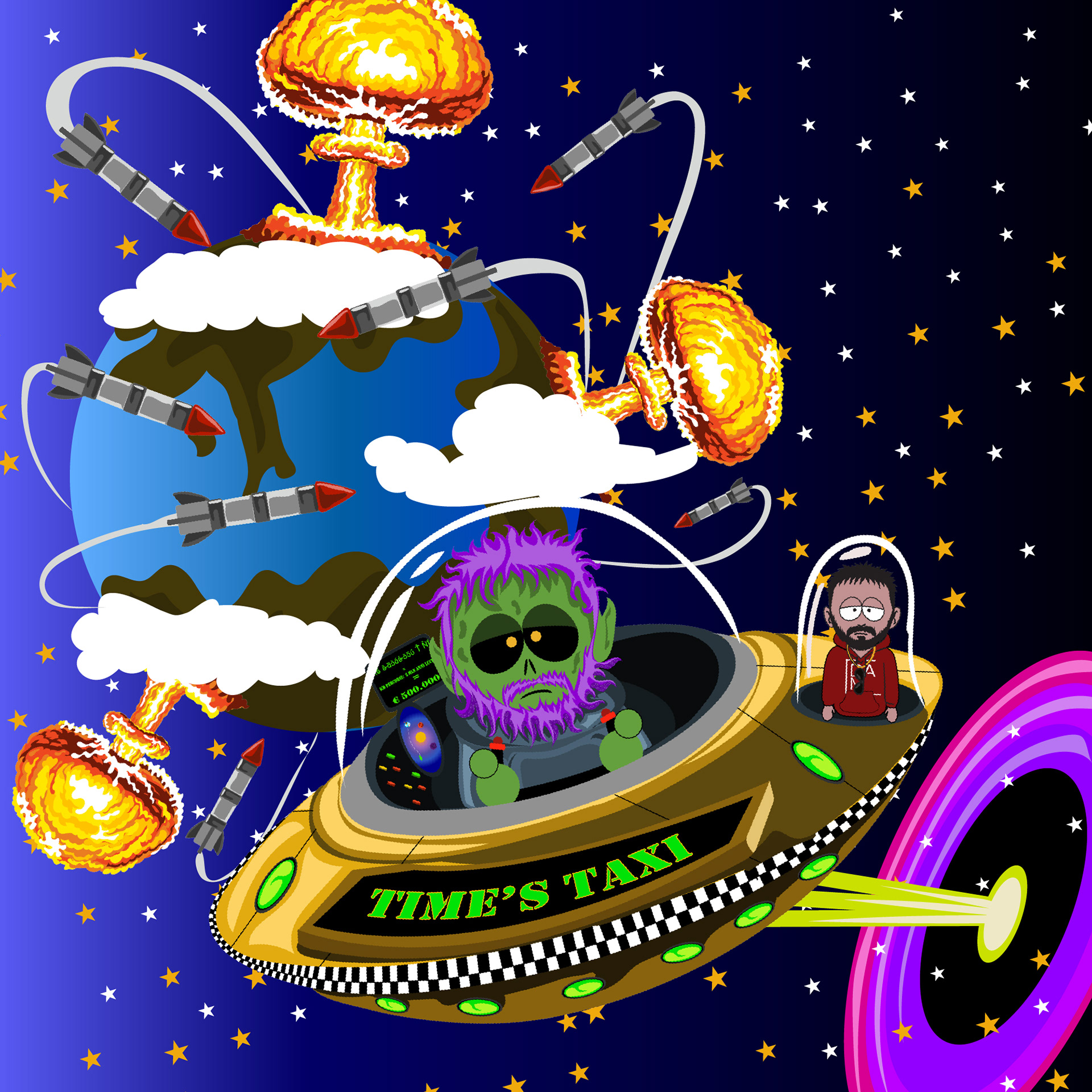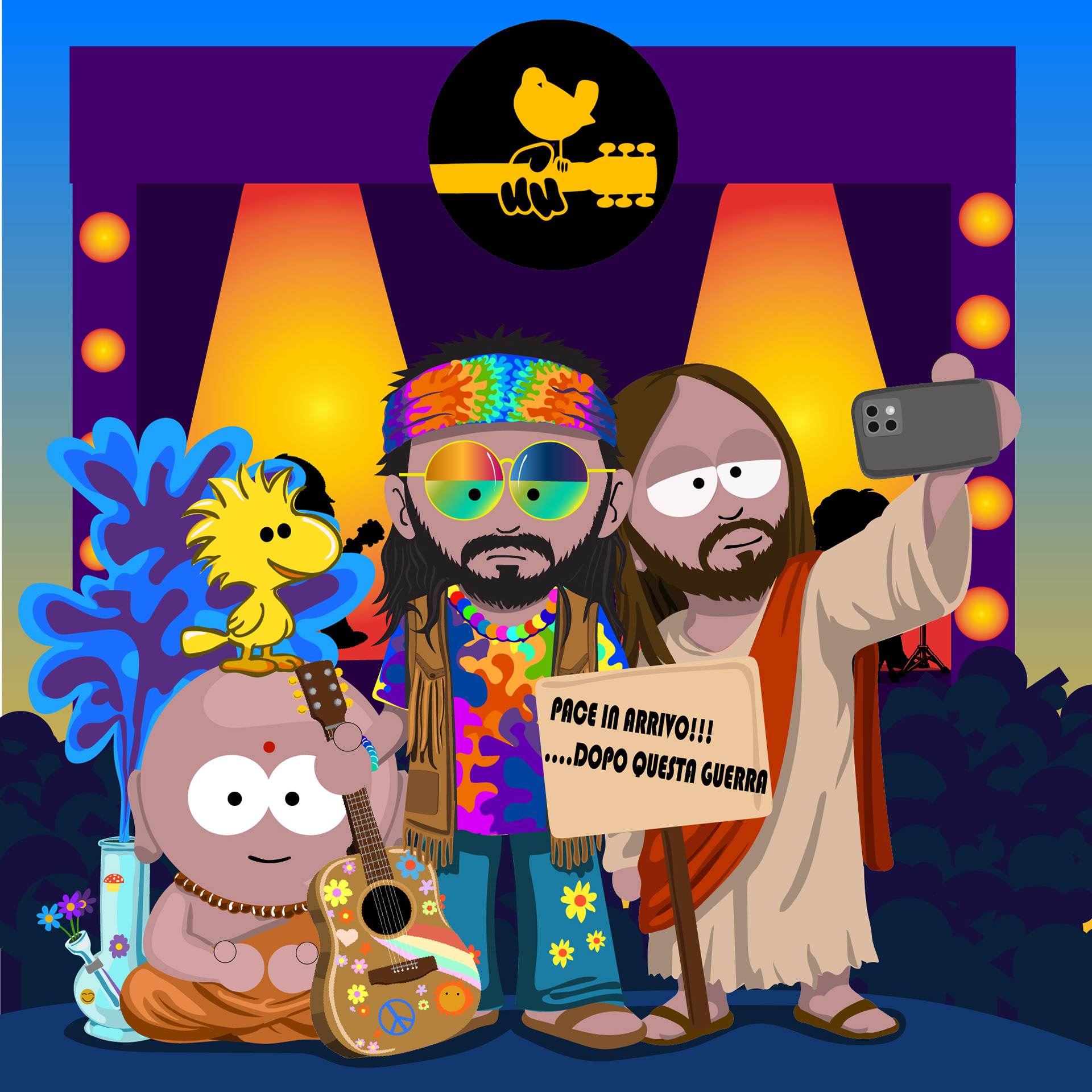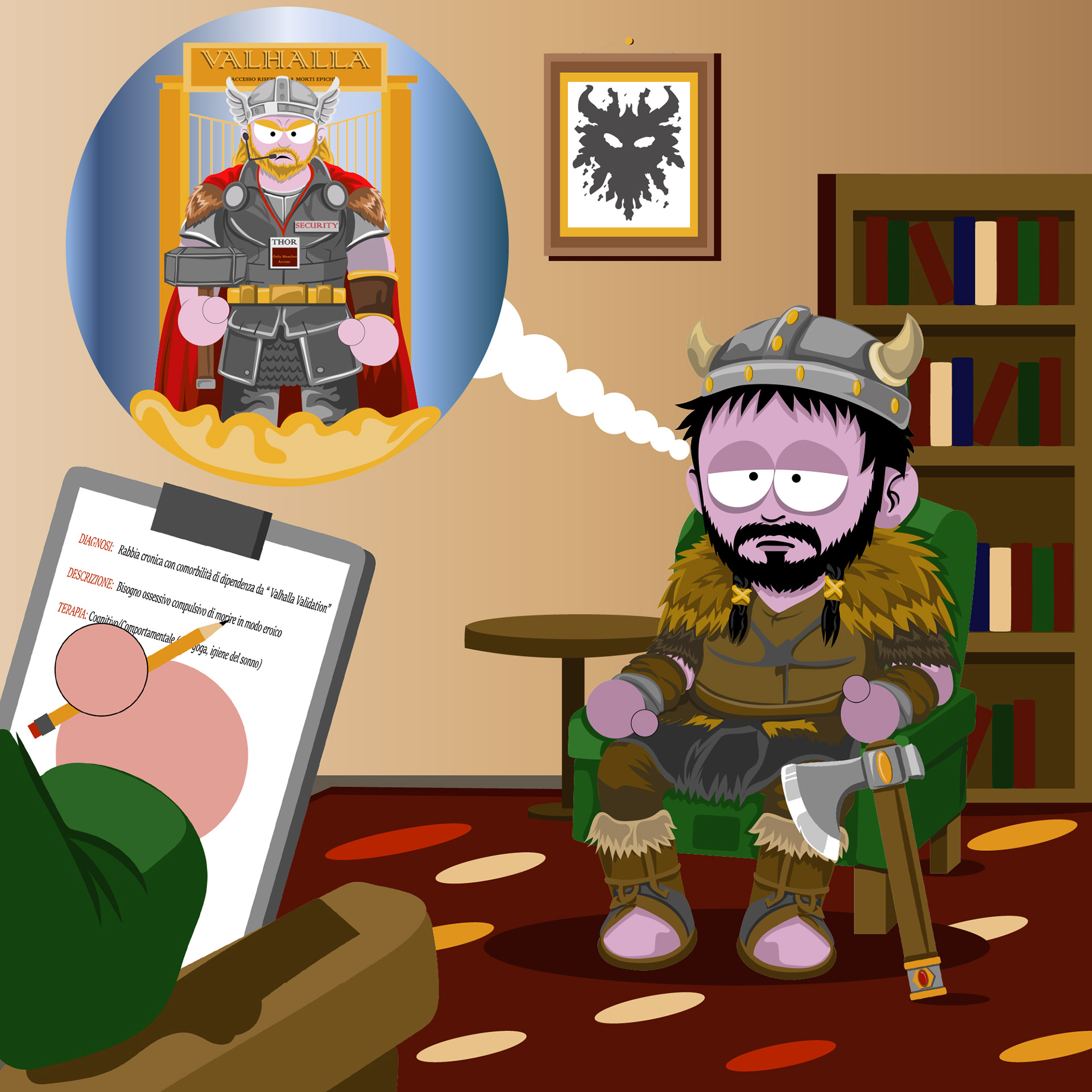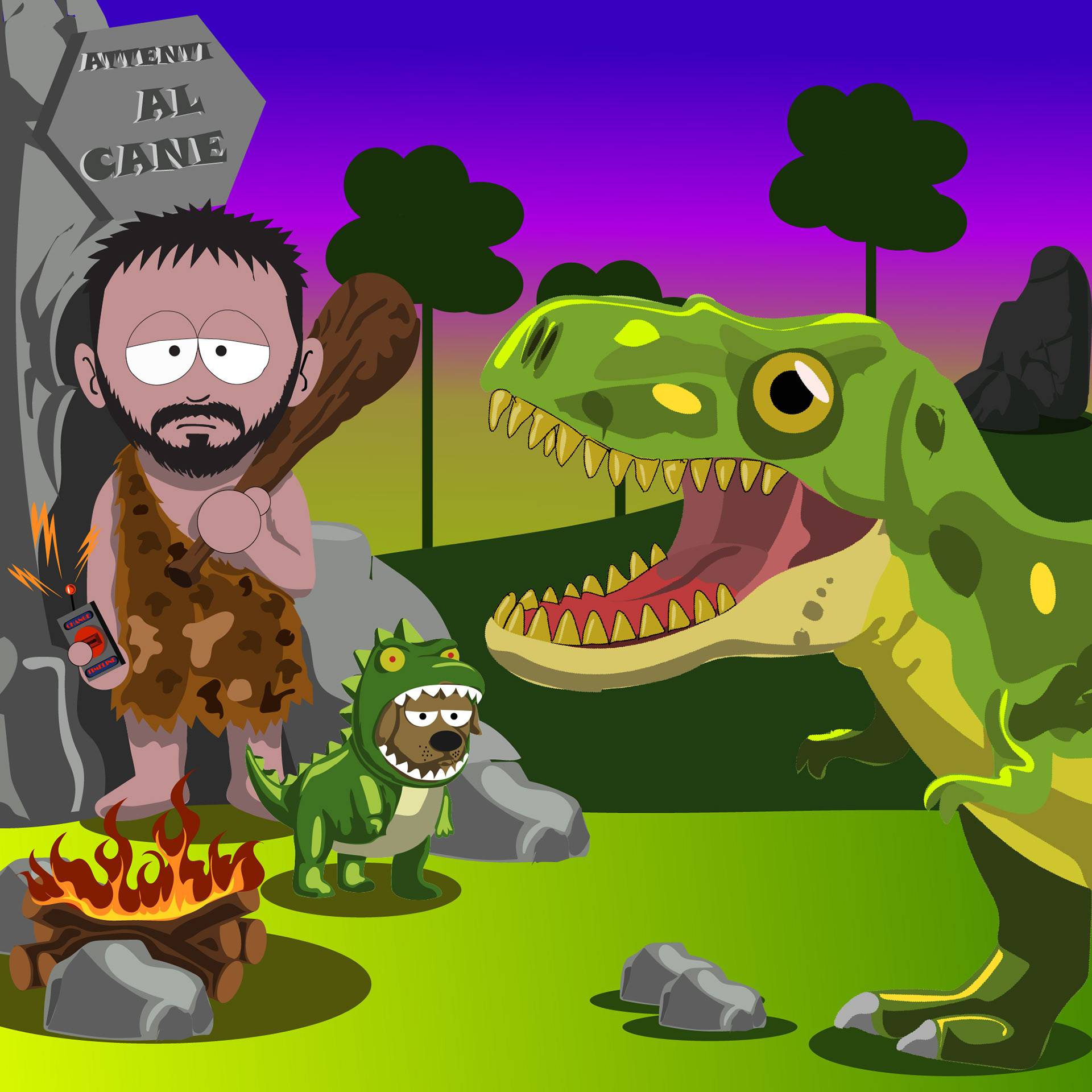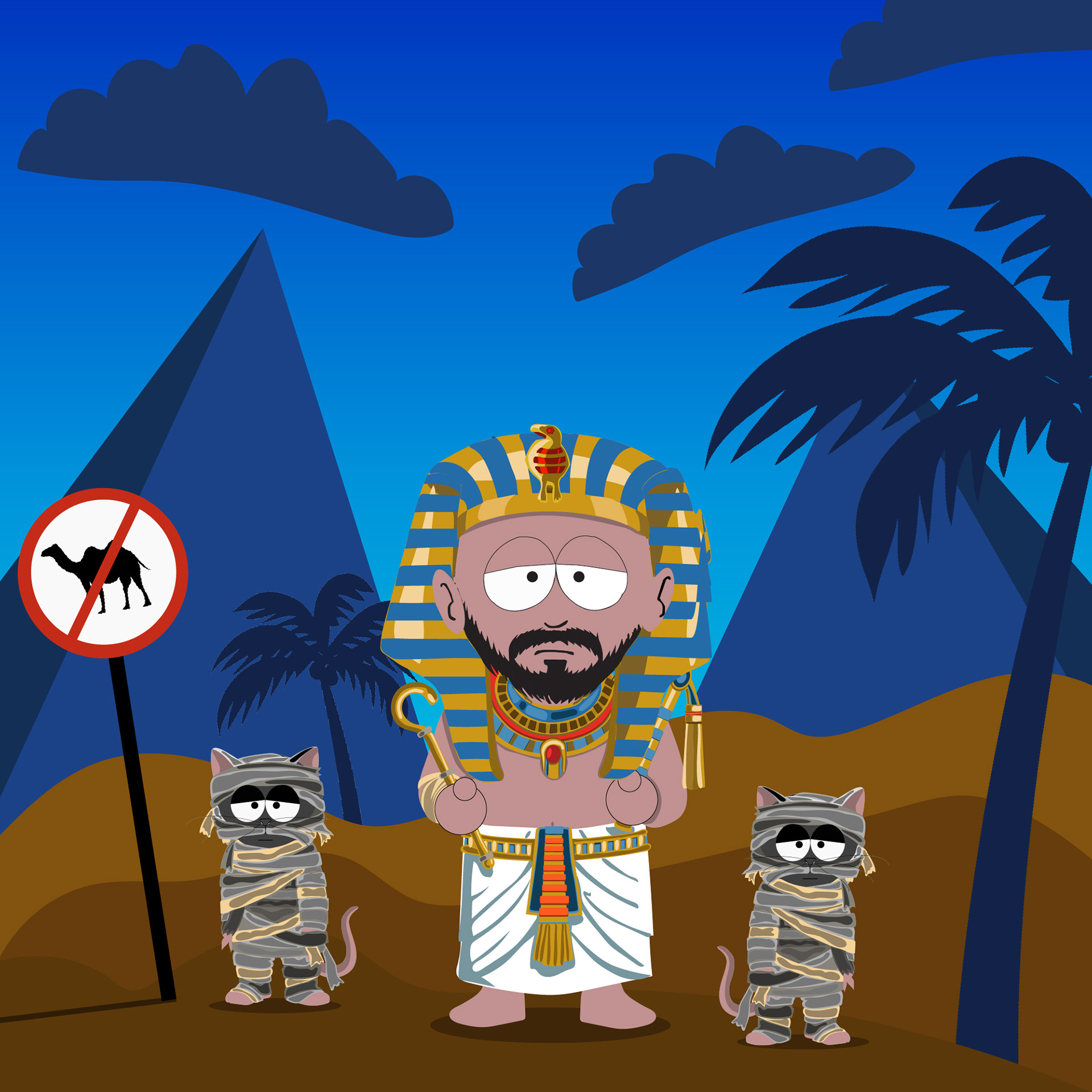 A custom illustrated portrait developed in a South Park–inspired style, combined with a narrative carousel designed for social media.